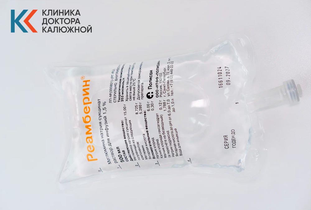 Капельницы с Реамберином обеспечивают детоксикацию, купирование окислительного стресса и гипоксии.
